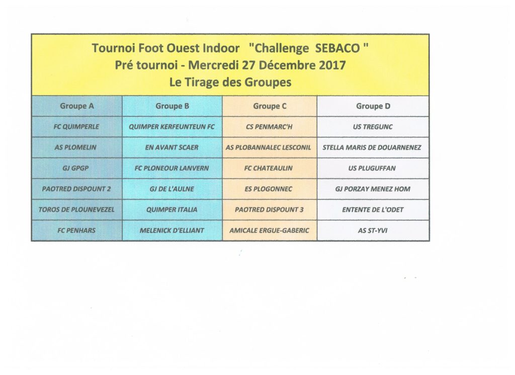 Ci-dessous le tirage des groupes pour le pré tournoi du Challenge SEBACO