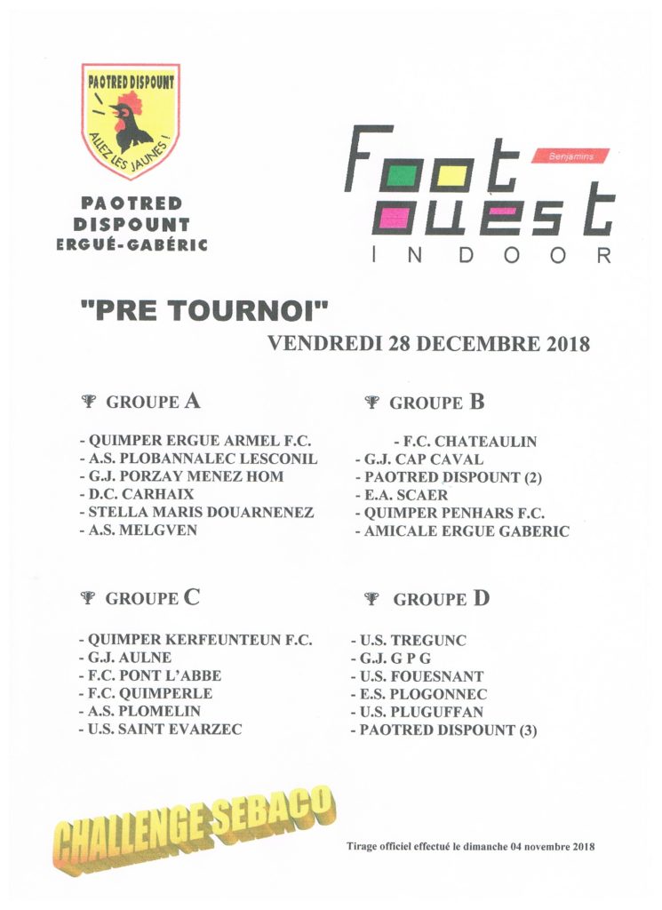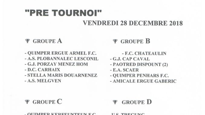 Ci-dessous les groupes de ce pré tournoi. Suite le vendredi 30 novembre avec le tirage du tournoi principal au Kemp’5.