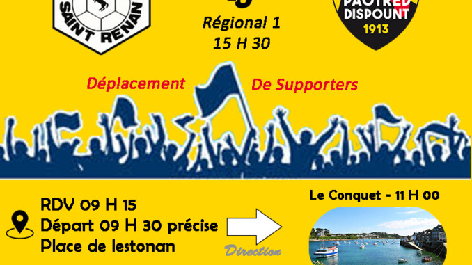 Le Dimanche 12 Mai le club organise un déplacement des supporters pour la rencontre de R1 entre EA St Renan et les Paotred.