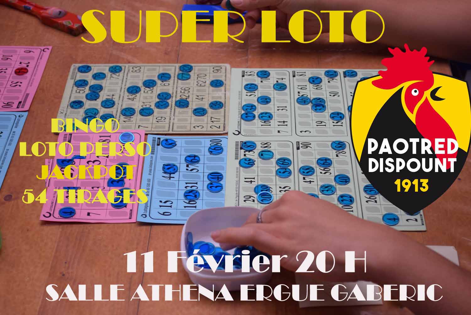 Super Loto Mardi 11 février 20 H Athena Ergue Gabéric 3 000 Euros de Gains dont 2 000 en BA Ouverture des portes 18 H