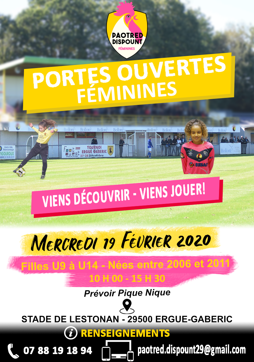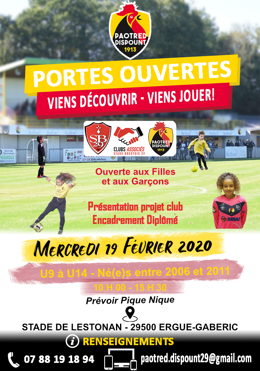 Tous les enfants intéressés sont invités à venir rencontrer les joueurs et joueuses actuellement licencié(e)s aux Paotred Dispount au stade de lestonan de 10H00 à 15H30.