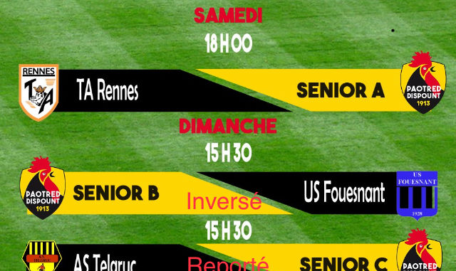 Suite à un arrêté municipal sur la commune d’Ergué-Gaberic le match de l’équipe B est inversé, match à Fouesnant à 15H30 sur terrain synthétique.