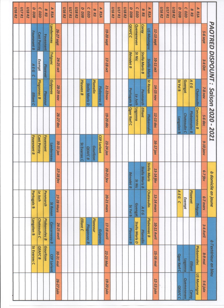 Championnats Seniors 2020 – 2021 6 août 2020 Jean-Pierre Morvan Actualités, LE CLUB, Seniors 0 Le calendrier des championnats seniors 2020 – 2021 est complet . La grille ci-dessous .
