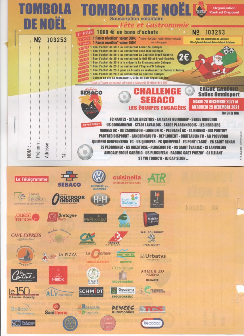 Pour permettre une distribution plus large des carnets de tombola , nous reportons le tirage de celle-ci au Dimanche 30 janvier à l’issue du match de R1 face à Guipavas .