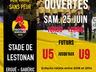 Viens t’essayer au football chez les Paotred Dispount le samedi 25 juin ! Portes ouvertes des catégories U5 jusqu’aux U9, enfants né(e)s entre 2018 et […]