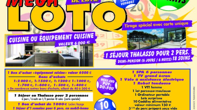 - Dimanche 08 juin : RDV à l’ensemble des bénévoles à 08 h 00 . Ouverture des portes à 09 h00 . Début du loto 11 h 00